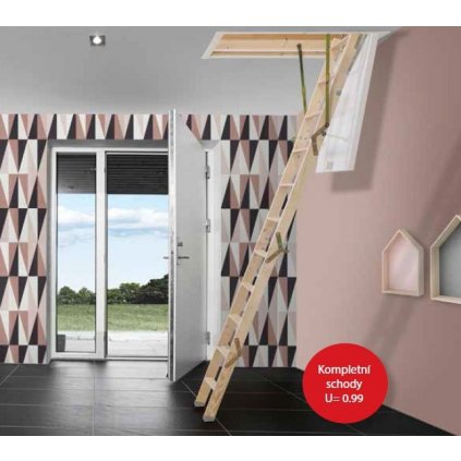 Půdní schůdky se skládacím dřevěným žebříkem, který je možné snadno zkrátit na požadovanou výšku místnosti.