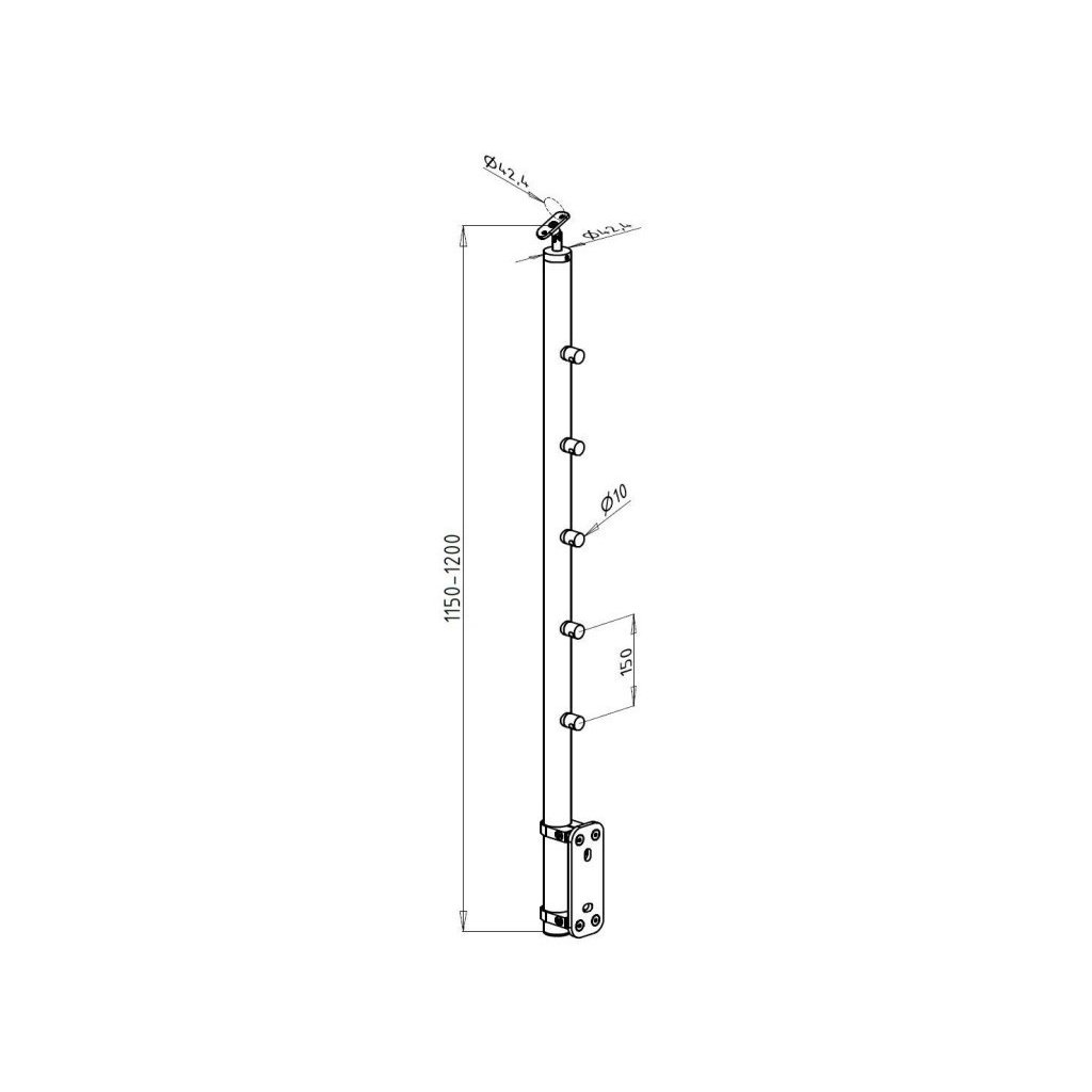 Nerezový sloupek boční kotvení hranatá patka 10-10-030